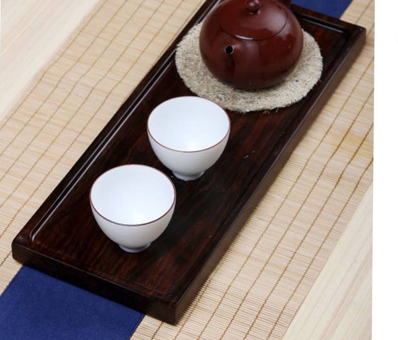 Chất liệu khay Trà bằng Gỗ trắc, có vân đẹp và tom rất mịn, gỗ đanh mặt vì tom trắc thưa, ngắn và vân của gỗ trắc ít có vảy/vằn/đốm trắng như cẩm/hương. Chà mặt gỗ trắc cho màu đỏ carrot, mùi gỗ trắc hơi chua, gỗ rất cứng và có tỷ trọng nặng hơn hương.