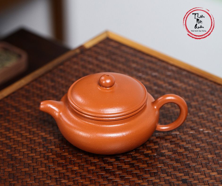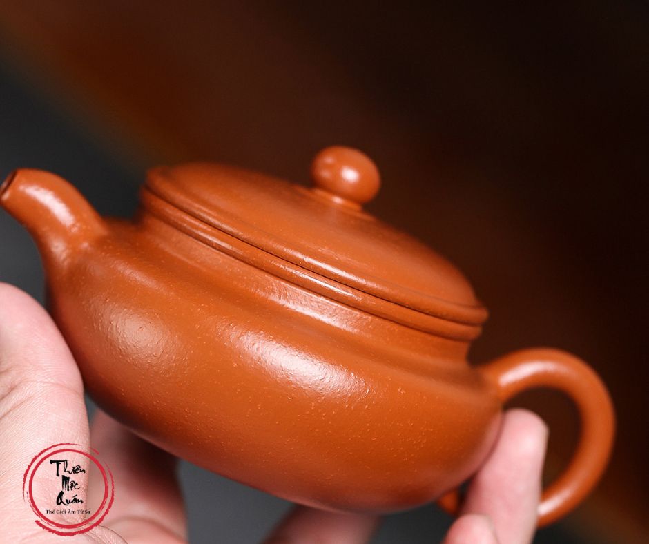 Ấm được chế tác hoàn toàn thủ công bởi nghệ nhân thực lực, sử dụng đất Chu Nê nguyên khoáng – dòng đất hiếm, bề mặt mịn, màu sắc trầm ấm, khả năng giữ nhiệt và thẩm hương vượt trội, giúp trà lên mùi nhanh, vị trà đậm và bền nước.