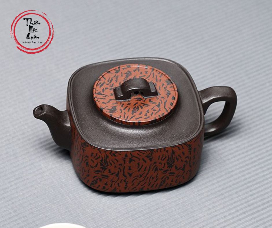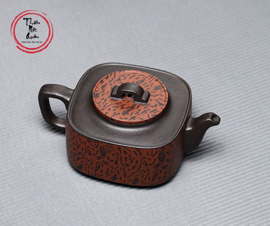Ấm Tứ Phương Thanh Vận có thiết kế kết hợp hài hòa giữa dáng vuông và tròn, thân ấm trang trí giảo nê tạo vân đất tự nhiên, độc đáo và có chiều sâu thẩm mỹ. Nắp ấm tạo hình cầu cong, vòi ấm dạng vòi cong mềm, cho dòng nước chảy mượt, dứt khoát.