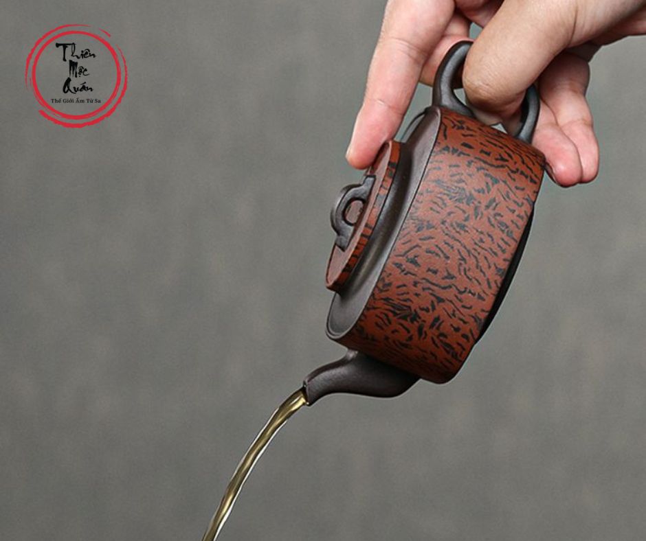 Thân ấm mang vẻ đôn hậu, trầm ổn, quai ấm dày dặn, chắc tay, cầm nắm thoải mái, cân đối tỷ lệ. Tổng thể ấm toát lên nét cổ phác, kín đáo nhưng tinh tế, rất phù hợp để uống trà hằng ngày lẫn sưu tầm. Đây là một chiếc ấm có hiệu năng pha trà cao, giá trị vượt tầm giá, đúng nghĩa “trợ thủ đắc lực” cho người yêu trà.