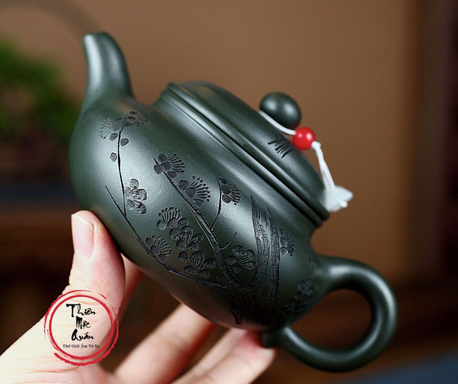 - Dáng ấm: Phỏng Cổ (Lấy cảm hứng từ dáng ấm cổ điển, kết hợp họa tiết hoa mai cách điệu đầy nghệ thuật).