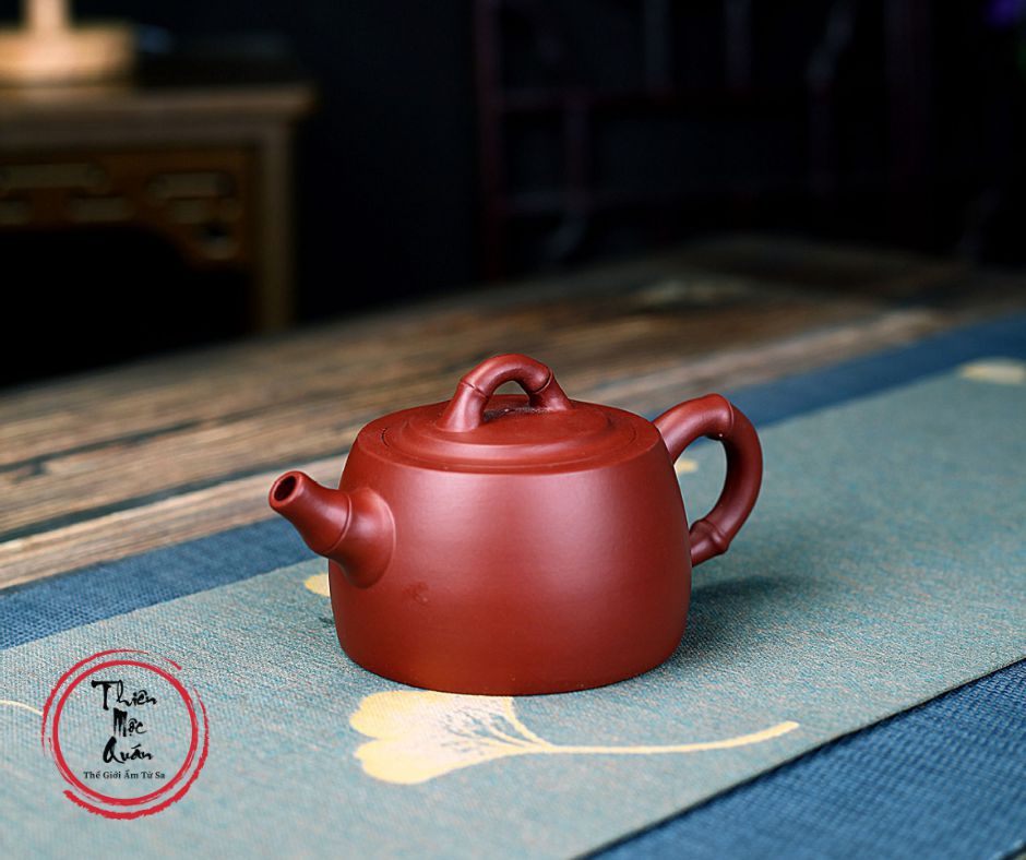 - Kiểu dáng: Thân ấm dáng Tỉnh Lan, các chi tiết vòi, quai và núm nắp được tạo hình đốt trúc tinh tế, mang ý nghĩa khí tiết thanh cao.