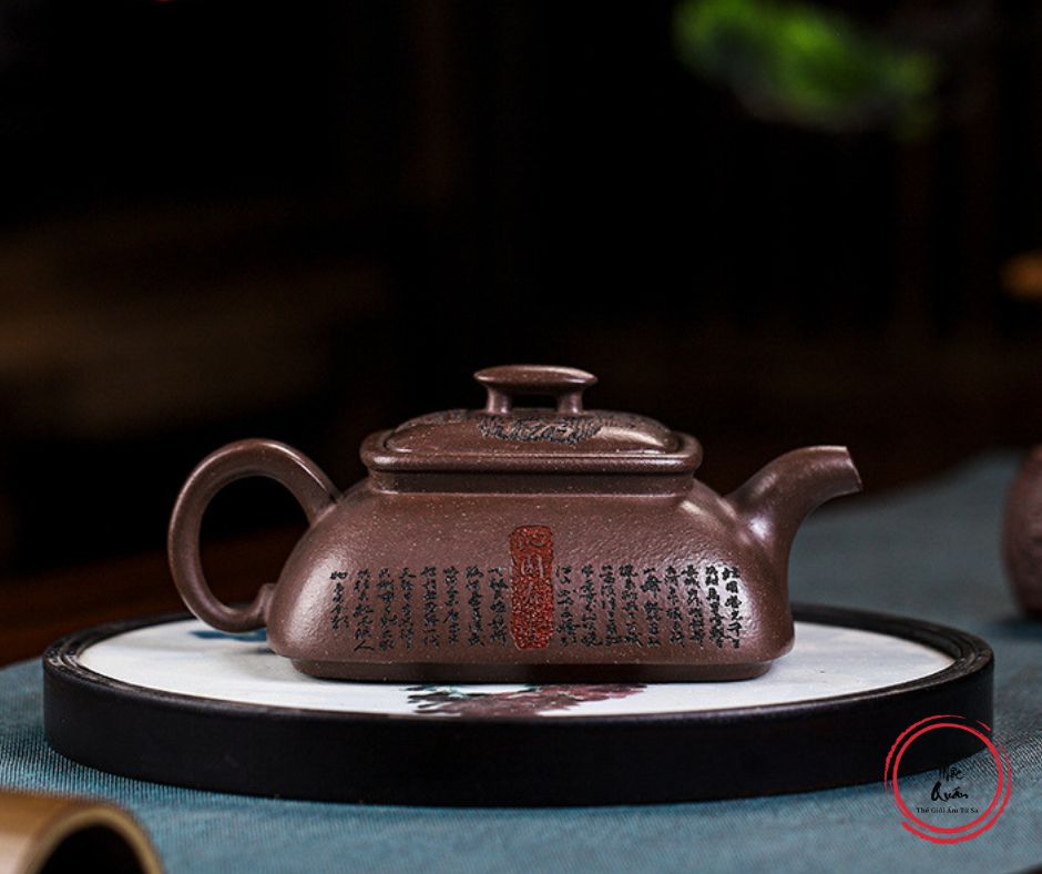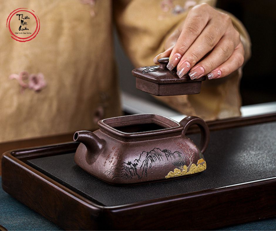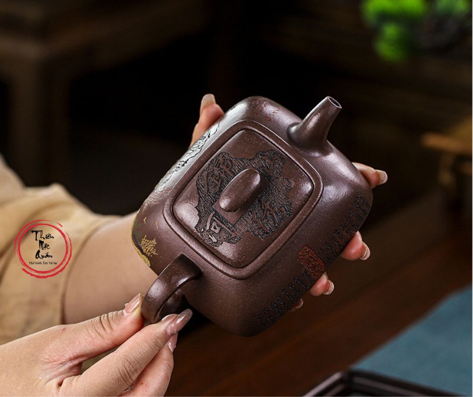 - Chất liệu: Sử dụng đất Tử Ngọc Kim Sa (Zi Yu Jin Sha). Đây là loại đất có sắc tím trầm mặc, ổn định, chứa các hạt kim sa lấp lánh như ngọc, mang lại cảm giác an yên và sang trọng.