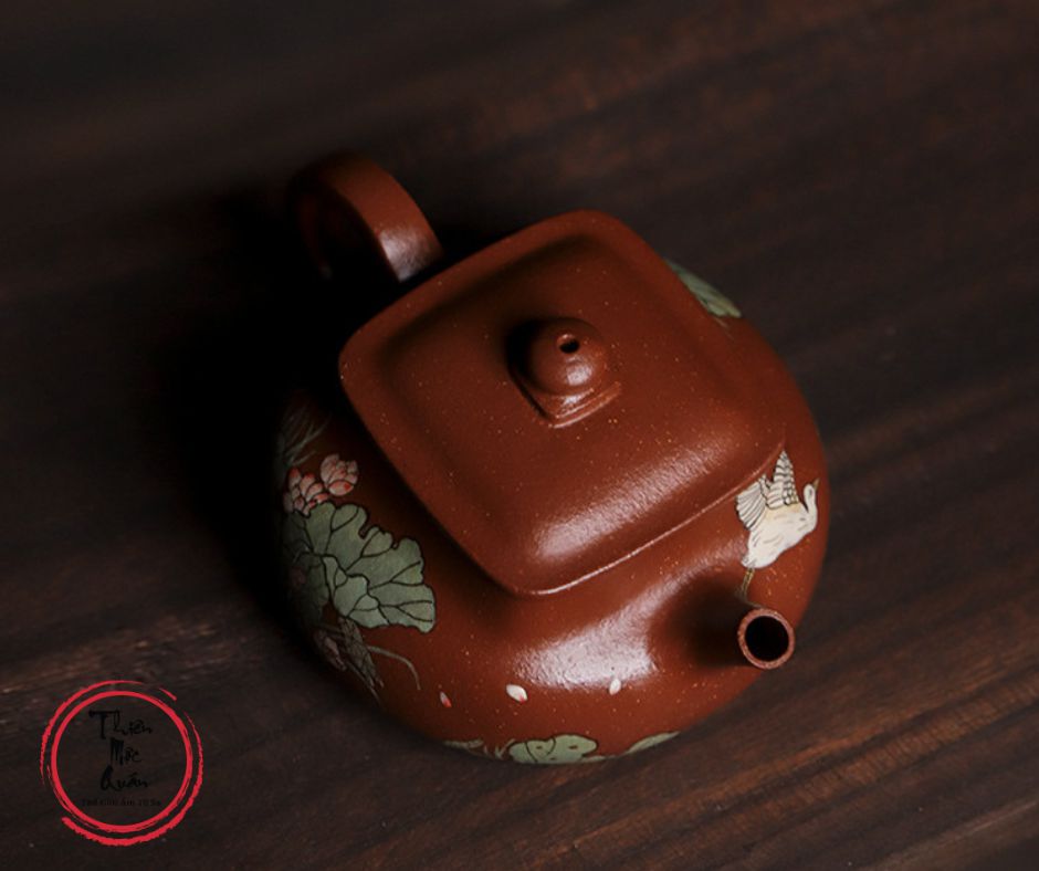 - Kỹ thuật Cung đình Nê họa đây là kỹ thuật dùng bút lông chấm bùn trà mịn để vẽ hoặc viết lên thân ấm khi còn bán khô. Sau khi nung, họa tiết sẽ hiện lên với hiệu ứng phù điêu nông, tạo chiều sâu và sự sang trọng.