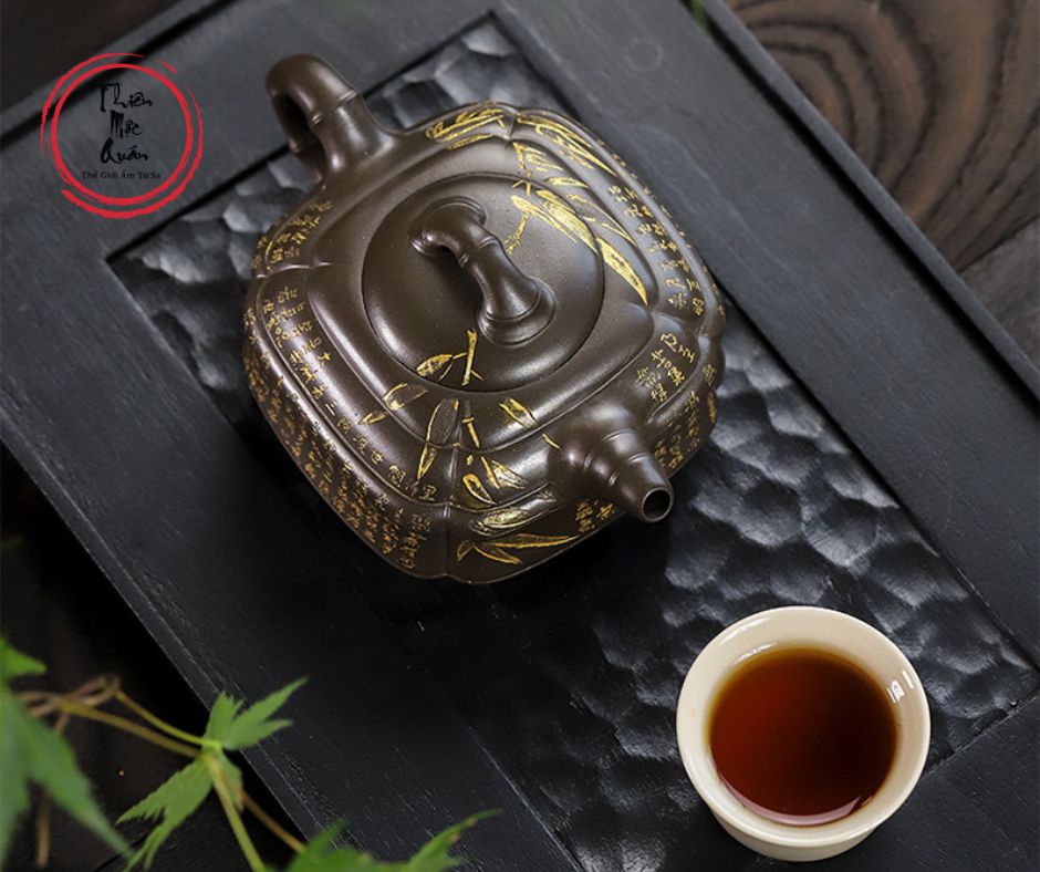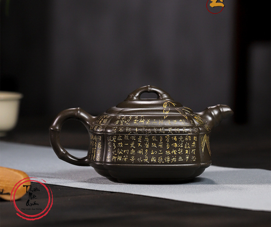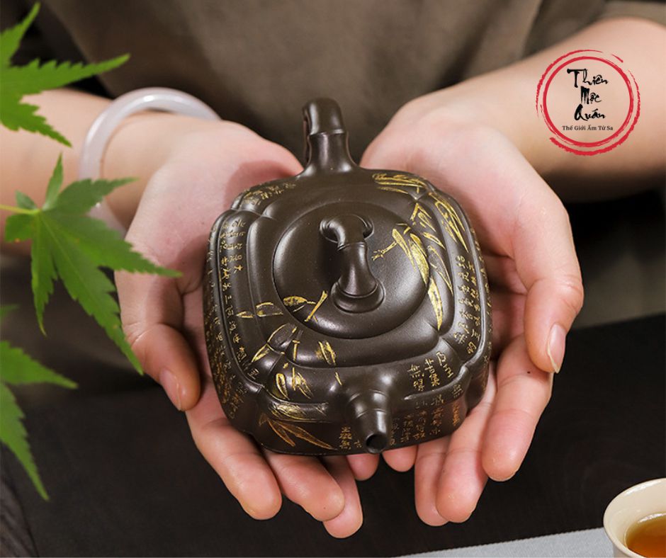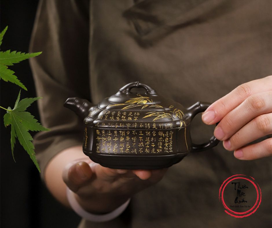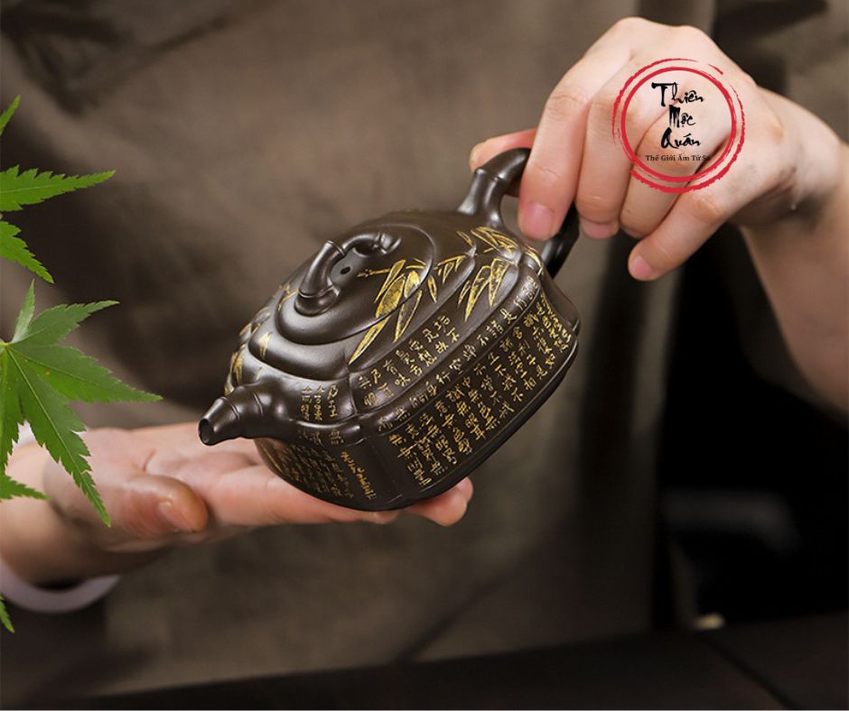 - Dáng ấm: Cân đối giữa hình khối vuông và tròn , mô phỏng thân trúc tự nhiên.