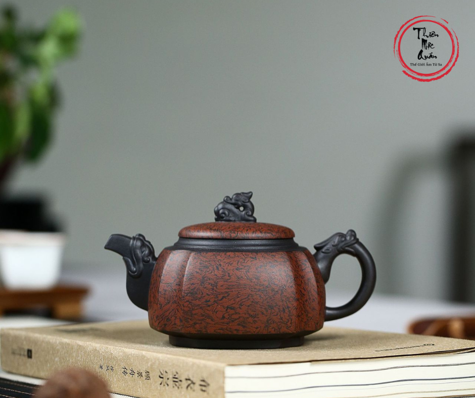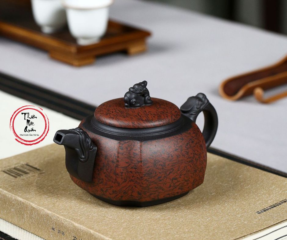 Mẫu ấm Tứ Phương Long Tôn là một tác phẩm mang vẻ đẹp uy nghiêm và quyền quý. Với tạo hình khối vuông vững chãi kết hợp cùng những đường nét chạm khắc tinh xảo, chiếc ấm thể hiện rõ khí chất của bậc vương giả. Đây không chỉ là một trà cụ cao cấp mà còn là món đồ sưu tầm giá trị dành cho những người sành trà.