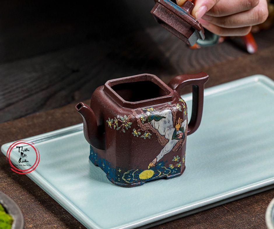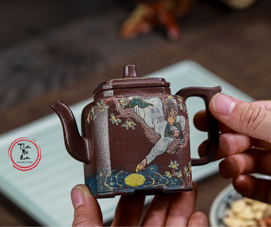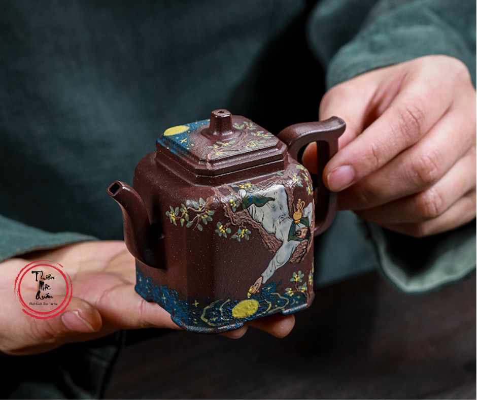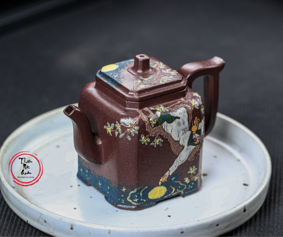 Nếu chiếc ấm trước mang cốt cách quân tử, thì Túy Tứ Phương lại mang tâm hồn của một thi sĩ. Với kỹ thuật Nê họa (họa bùn) đỉnh cao, chiếc ấm như một bức tranh sơn thủy hữu tình, tái hiện điển tích thi nhân say dưới ánh trăng.
