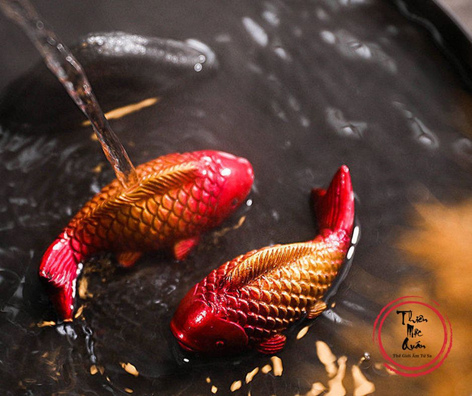 Cá chép mang ý nghĩa cát tường, dư dả, tài lộc sung túc quanh năm. Trong văn hóa Á Đông, cá chép tượng trưng cho phú quý và sự viên mãn, rất được ưa chuộng trên bàn trà.