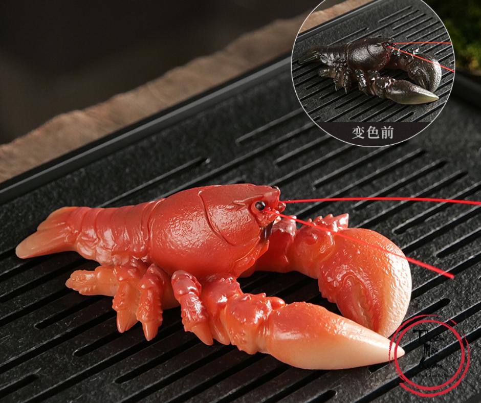 Sản phẩm là trà sủng tôm hùm đổi màu, phụ kiện decor bàn trà độc đáo và sang trọng. Khi gặp nước trà nóng, tượng sẽ chuyển màu nổi bật, tạo điểm nhấn thú vị trong mỗi buổi thưởng trà.